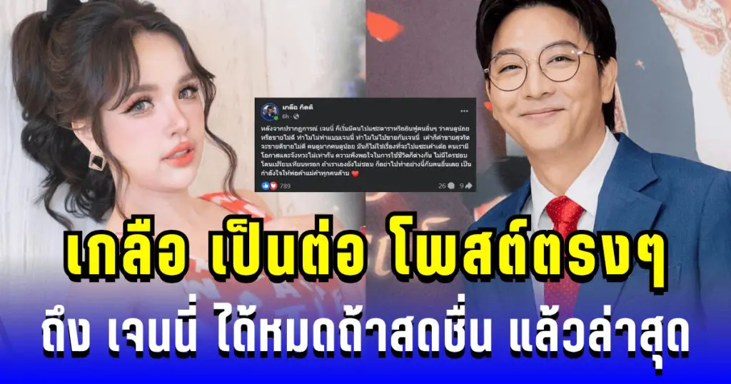 เมื่อวันที่ 13 ตุลาคม 2568 กิตติ เชี่ยววงศ์กุล หรือ เกลือ เป็นต่อ นักแสดงชื่อดัง ได้ออกมาโพสต์ข้อความบนเฟซบุ๊กส่วนตัว เกลือ กิตติ ถึง เจนนี่ ได้หมดถ้าสดชื่น ระบุว่า