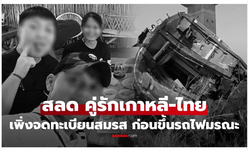 สลด หนุ่มเกาหลี-สาวไทย เพิ่งจดทะเบียนสมรส 1 วัน ก่อนเสียชีวิต เหตุเครนถล่มทับรถไฟ เกิดโศกนาฏกรรมสะเทือนใจอีกครั้ง เมื่อเหตุการณ์เครนก่อสร้างถล่มลงมาทับรถไฟความเร็วสูง ส่งผลให้มีผู้เสียชีวิต 32 ราย และบาดเจ็บจำนวนมาก เหตุการณ์เกิดขึ้นเมื่อวันที่ 14 มกราคมที่ผ่านมา ขณะรถไฟขบวนด่วนพิเศษที่ 21 กรุงเทพ-อุบลราชธานี ผ่านบริเวณจุดก่อสร้าง