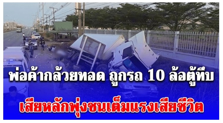 ขณะนั้นได้มีรถบรรทุกสิบล้อตู้ทึบ สีขาว ทะเบียน 64-437 กรุงเทพมหานคร ขับโดย นายบันชา อายุ 43 ปี เกิดเสียหลักพุ่งชนท้ายรถกระบะอย่างแรง ส่งผลให้รถกระบะกระเด็นตกถนนลงไปในร่องน้ำริมทาง กระทะน้ำมันและข้าวของเครื่องใช้กระจัดกระจายไปคนละทิศละทาง รถกระบะได้รับความเสียหายอย่างหนักและถูกรถบรรทุกทับอยู่ภายในร่องน้ำ ส่วนร่างของผู้เสียชีวิตกระเด็นตกจากรถ เสียชีวิตอยู่ริมถนน