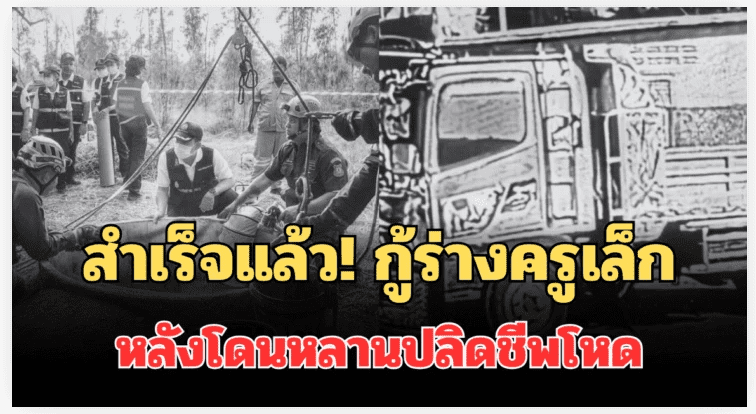 ความคืบหน้าล่าสุด เมื่อเวลา 22.00 น. เจ้าหน้าที่กู้ภัยสามารถนำร่างของครูเล็กขึ้นมาจากบ่อบาดาลได้สำเร็จ
