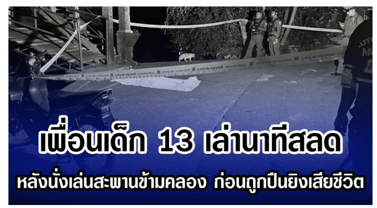 ที่เกิดเหตุบริเวณชุมชนร่วมใจพัฒนาใต้ เชิงสะพานข้ามริมคลองถนน พบร่าง ด.ช.หนุ่ม (นามสมมติ) อายุ 13 ปี มีบาดแผลถูกอาวุธปืนยิง 1 นัด เข้าบริเวณลำคอตัดหลอดเลือด นอนหงายเสียชีวิต ห่างไปประมาณ 100 เมตร พบกระสุนปืนขนาด 9 มม. 2 นัดและปลอกกระสุนปืนขนาด .38 มม. 1 ปลอกตกอยู่พื้นปูนทางเดิน จึงบันทึกเก็บรวบรวมที่เกิดเหตุไว้เป็นหลักฐาน