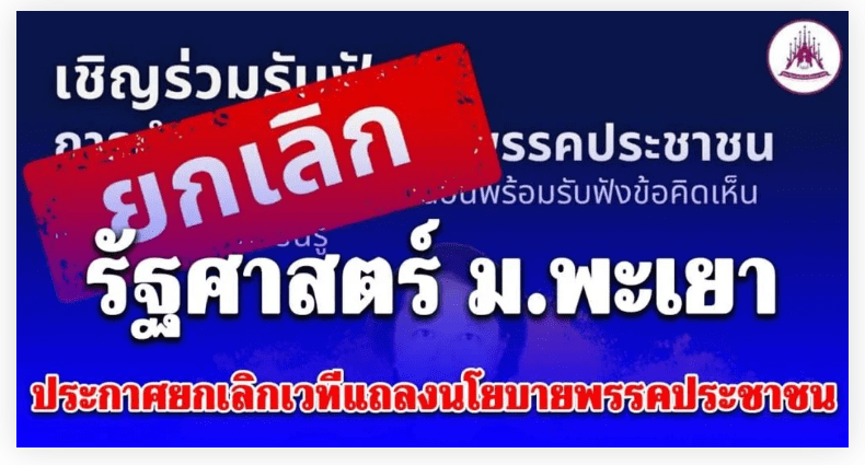 รัฐศาสตร์ ม.พะเยา ประกาศยกเลิกเวทีแถลงนโยบายพรรคประชาชน