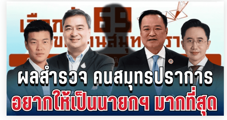 มาแล้ว! นิด้าโพล เผยผลสำรวจ เลือกตั้ง 69 คนสมุทรปราการ อยากให้เป็นนายกฯ มากที่สุด