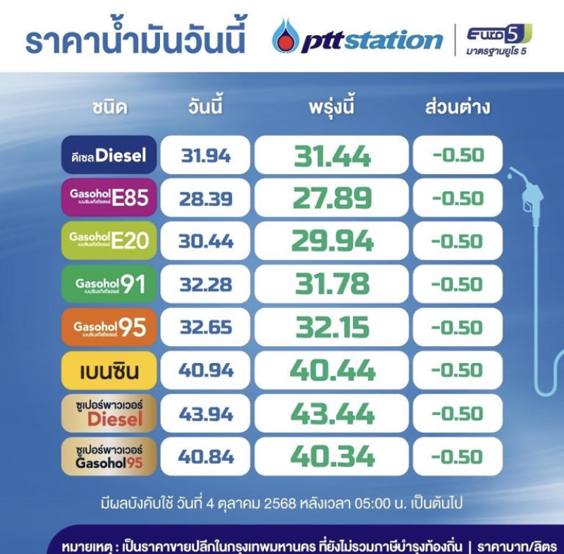 ราคาน้ำมันพรุ่งนี้ (7 ต.ค. 68).!!