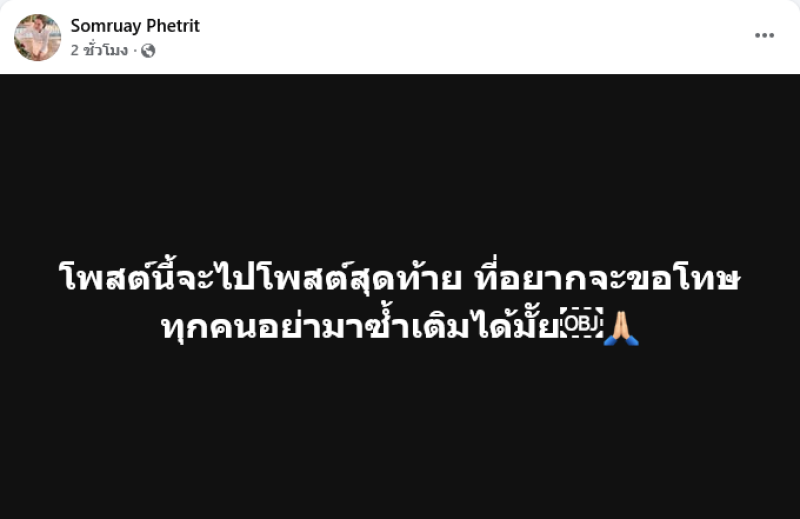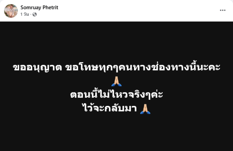 จากกรณีที่ก่อนหน้านี้ทางด้าน แม่เกตุ แม่ของนักร้องสาว เจนนี่ ได้หมดถ้าสดชื่น ได้ออกมาโพสต์ข้อความจอดำผ่านทางโซเชียลว่า ขออนุญาต ขอโทษทุกๆคนทางช่องทางนี้นะคะ ตอนนี้ไม่ไหวจริงๆค่ะ ไว้จะกลับมา,โพสต์นี้จะไปโพสต์สุดท้าย ที่อยากจะขอโทษทุกคนอย่ามาซ้ำเติมได้มััย