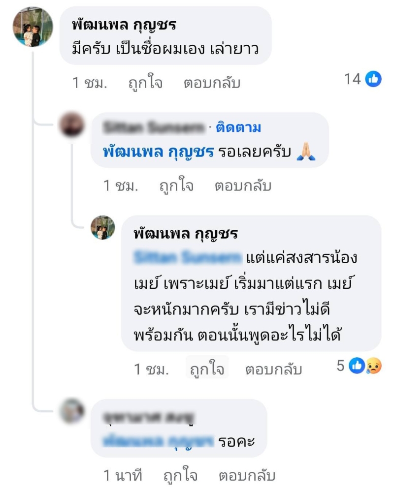 โดยทางด้าน ดีเจเเมน ได้ออกมาตอบกลับคอมเมนต์ว่า มีครับ เป็นชื่อผมเอง เล่ายาว แต่แค่สงสารน้องเมย์ เพราเมย์เริ่มมาแต่แรก เมย์จะหนักมากครับเรามีข่าวไม่ดีพร้อมกัน ตอนนั้นพูดอะไรไม่ได้