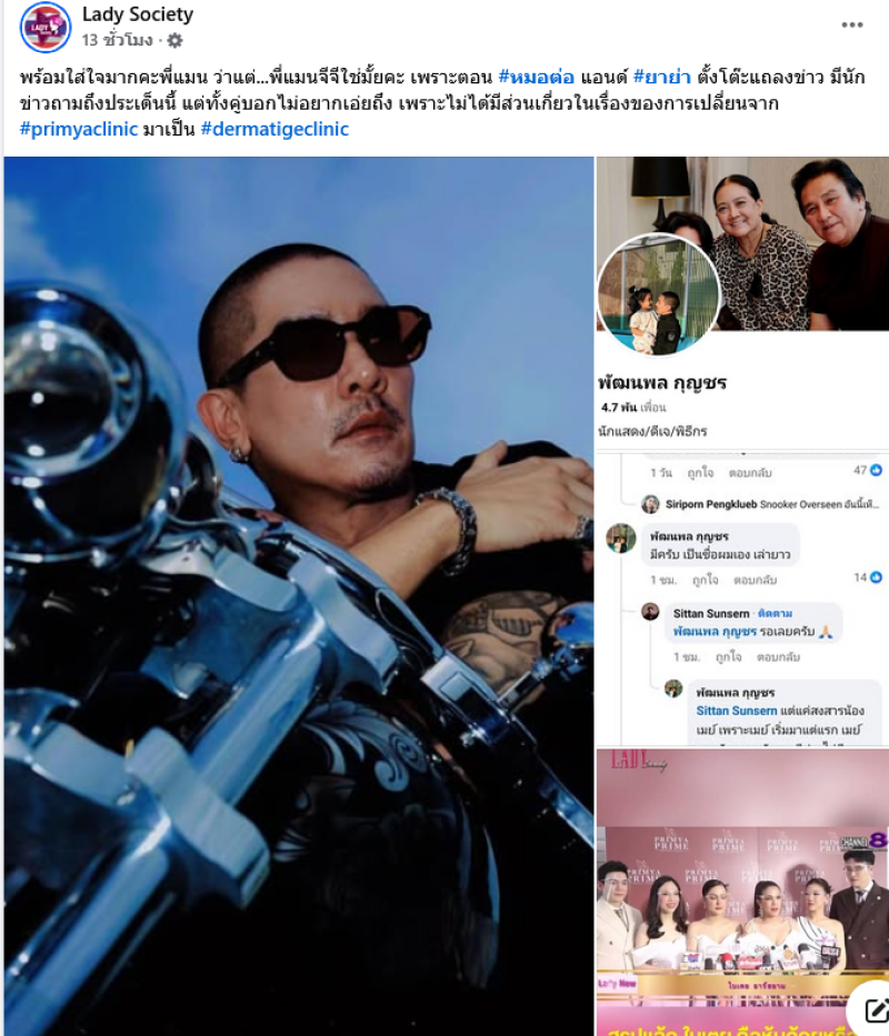 ทั้งนี้ด้านเพจเฟซบุ๊คLady Society โพสต์คลิปงานแถลงข่าวข่าวเปิดตัวคลินิกศัลยกรรมเสริมความงามโดยที่มี เม พรีมายา, ยาย่า, หมอต่อ, หมอกลาง และ ใบเตย พร้อมระบุแคปชั่นว่า สรุปแล้ว #ใบเตย ถือหุ้นด้วยหรือไม่? กับดราม่าธุรกิจความงาม #เมพรีมายา #Primyaclinic เพราะในรายการบอกมีแค่ 4 หุ้น