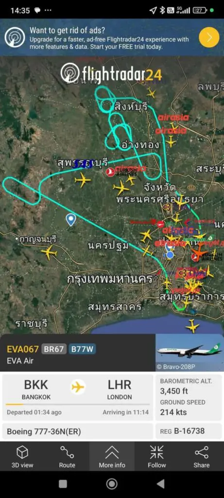 บินออกจากสุวรรณภูมิ 13.01 น.5/4/2025 ยังบินวนเหนือน่านฟ้าไทย มุ่งหน้ากลับท่าอากาศยานสุวรรณภูมิ กรุงเทพฯ