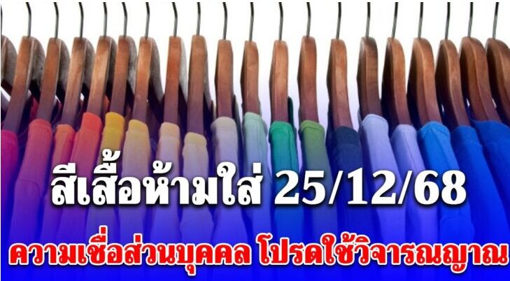 สีเสื้อห้ามใส่ วันที่ 25 ธันวาคม 2568 (ความเชื่อส่วนบุคคล โปรดใช้วิจารณญาณ)