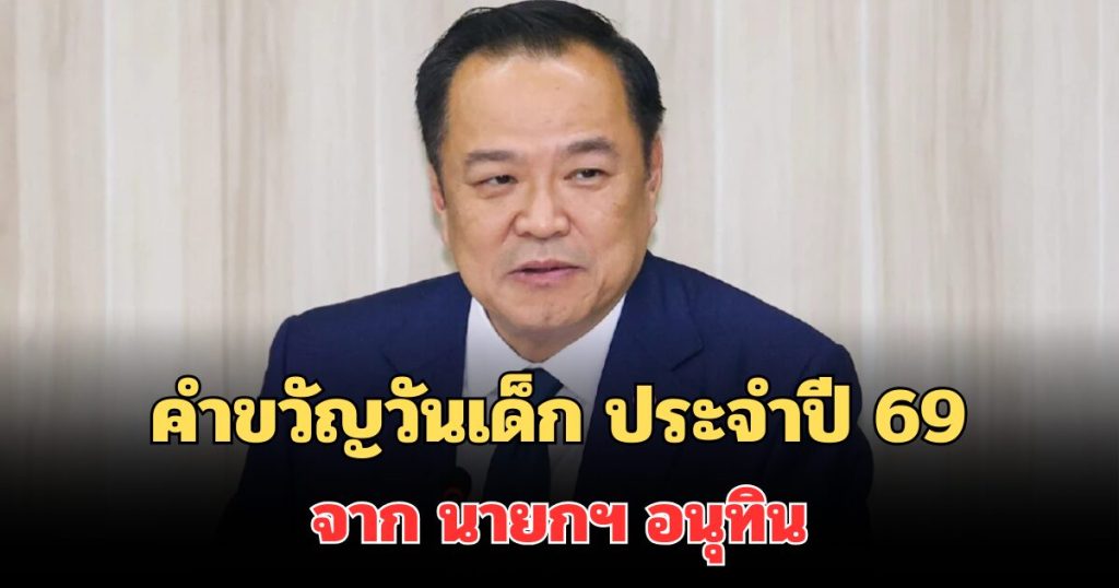 เปิดคำขวัญวันเด็ก ประจำปี 69 จาก นายกฯ อนุทิน วันที่ 16 ธันวาคม 2568 ที่ทำเนียบรัฐบาล นางสาวลลิดา เพริศวิวัฒนา รองโฆษกประจำสำนักนายกรัฐมนตรี ได้ออกเปิดเผยว่า นายอนุทิน ชาญวีรกูล นายกรัฐมนตรี ได้มอบคำขวัญเนื่องในวันเด็กแห่งชาติ ประจำปีพุทธศักราช