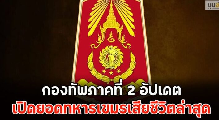 กองทัพบก เปิดเผยรายชื่อพลทหารเสียชีวิตในเหตุปะทะชายแดน ยอดรวม 3 นาย หลังจากที่วันนี้ (9ธันวาคม) เสียชีวิตเพิ่มอีก 2 นาย กองทัพบก รับรายงานจากกองกำลังสุรนารี กองทัพภาคที่ 2 ว่าวันนี้ (9 ธ.ค.) มียอดกำลังพลเสียชีวิตเพิ่ม 2 นาย […]