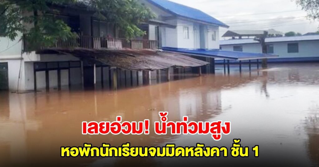 เลยอ่วม! น้ำทะลักท่วมสูง หอพักนักเรียนจมมิดหลังคาชั้น1